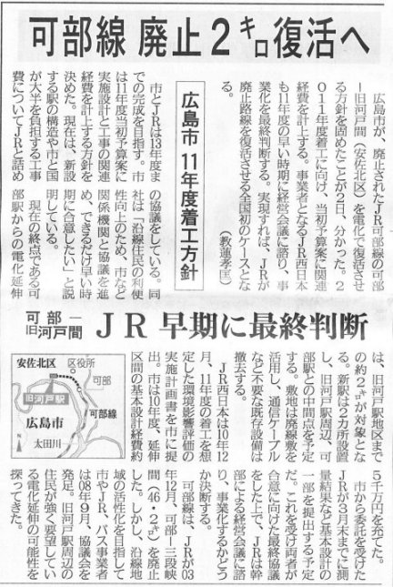 河戸駅までをそのまま復活するのだど思っていましたが、河戸駅から先と、可部―河戸間にそれぞれ新駅を建設する予定だそうですね。
